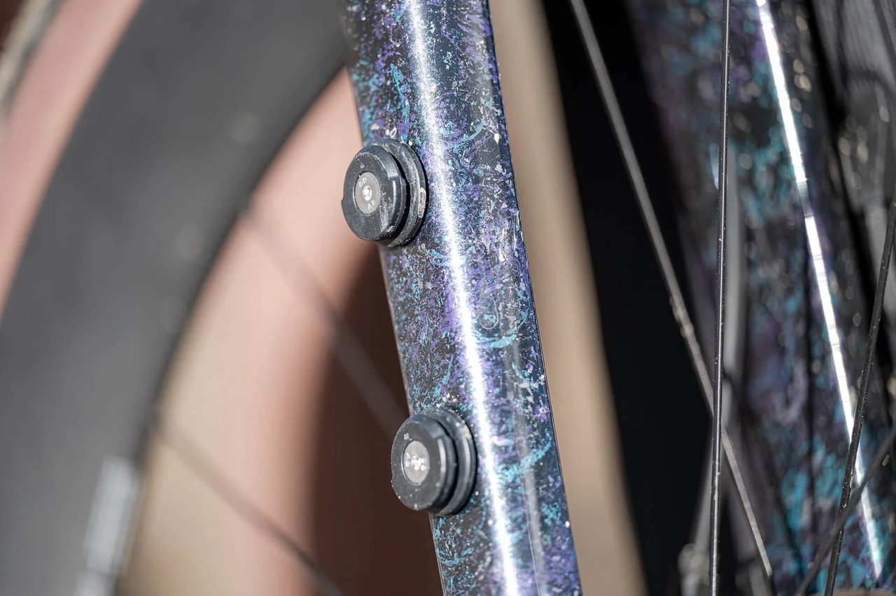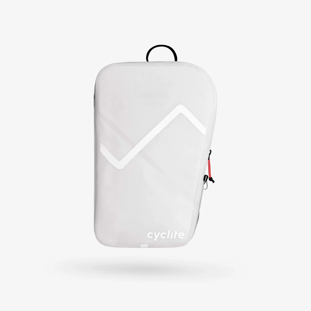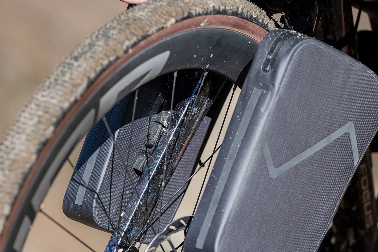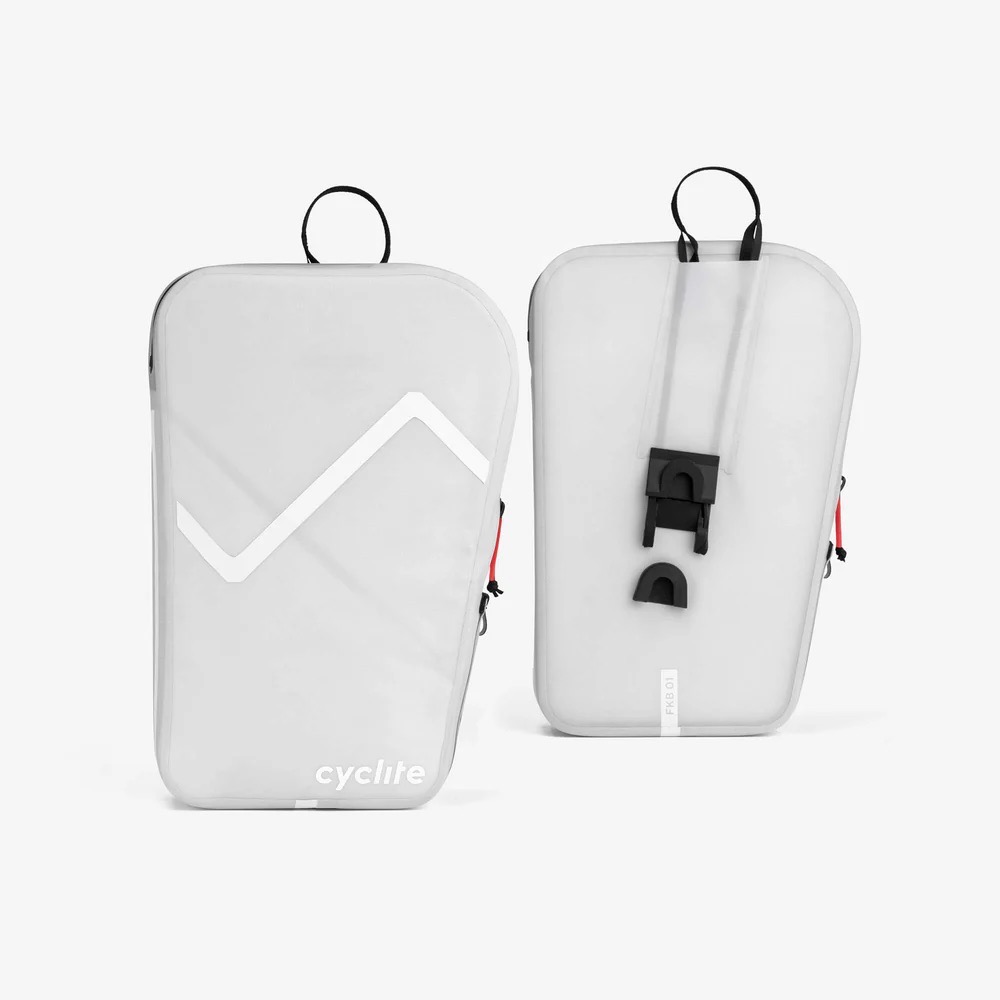 FORK BAG / 01 ist eine Gabeltasche für alle Bikepackerinnen und Bikepacker, die zusätzliches Volumen außerhalb des Rahmens benötigen, dabei aber nicht auf Aerodynamik verzichten wollen. Ihre Besonderheit ist das flache, keilförmig zulaufende Design, wodurch sie besonders windschnittig und aerodynamisch bleibt. In Kombination mit einem tiefen Schwerpunkt bleibt das Fahrgefühl weiterhin ausgewogen und natürlich. Eine stabile Innenstruktur verhindert zudem ein Ausbeulen – auch bei voller Ausnutzung des 3,1-Liter-Volumens. Hinzu kommt ein wetterfester Reißverschlusszugang zum Hauptfach sowie eine Netztasche mit Schnellzugriff für die kurzen Stopps unterwegs. Befestigt wird die FORK BAG / 01 über eine schnelle, unkomplizierte und zuverlässige Verriegelung – und dabei entweder direkt an vorhandenen Schraubgewinden der Gabel oder, bei Starr- und Federgabeln ohne Gewinde, per Steckachsen am Fahrrad. Für die Montage per Steckachse wird zusätzlich eine passende Adapterlösung wie das Axle Pack von Old Man Mountain benötigt. Beide Befestigungsoptionen sind verdreh- und verrutschfest. FORK BAG / 01 kann entweder einzeln als Variante für die rechte oder linke Radseite oder im Set mit Taschen für beide Radseiten erworben werden.