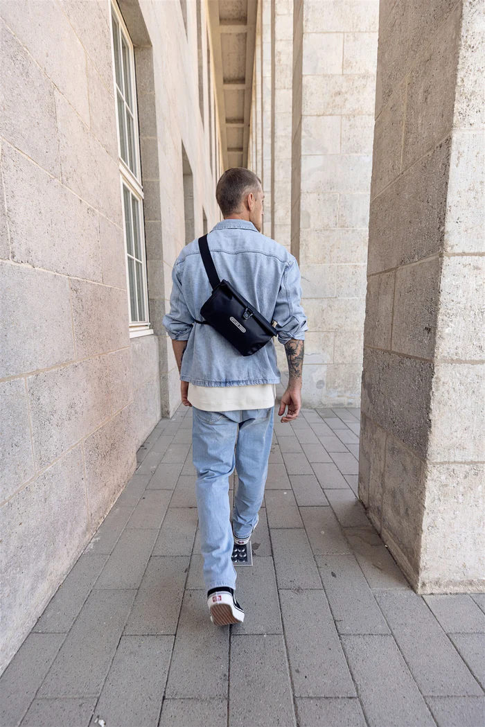 Die Velo-Sling Flex ist eine vielseitige Umhängetasche. Sie lässt sich schnell am Fahrradlenker montieren. Sie kombiniert durchdachtes Design mit robusten Materialien und passt sich dem aktiven Alltag an. Der breite Schultergurt ist angenehm zu tragen. Er kann für mehr Bewegungsfreiheit beim Radfahren abgenommen oder am Taschenkörper fixiert werden. Für die Nutzung am Lenker dient das Bar-Lock-Halterungssystem. Dieses ermöglicht eine einfache, aber stabile Fixierung. Für zusätzliche Transportmöglichkeiten ist die Tasche mit Daisy Chains ausgestattet. Hier können die mitgelieferten Gurtbänder flexibel genutzt werden, etwa zur Befestigung einer Jacke oder von Zubehör. Die Bänder helfen auch, den Rollverschluss bei voller Befüllung zu stabilisieren. Ein Magnetverschluss sorgt für ein schnelles, einhändiges und sicheres Schließen der Tasche. In Kombination mit dem wasserdichten Material und dem zuverlässigen Rollverschluss bleibt die Ausrüstung trocken und geschützt. Wasserdicht ist Standard. Im Inneren der Velo-Sling Flex befindet sich ein separates Reißverschlussfach. Dies dient der geordneten Aufbewahrung von Wertgegenständen oder Kleinteilen. Die Tasche ist reparierbar konzipiert und Made in Germany gefertigt.