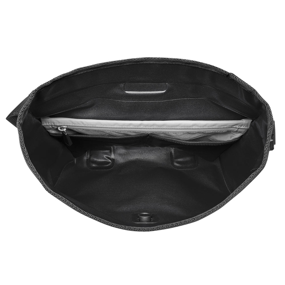 Die Velo-Sling Flex ist eine vielseitige Umhängetasche. Sie lässt sich schnell am Fahrradlenker montieren. Sie kombiniert durchdachtes Design mit robusten Materialien und passt sich dem aktiven Alltag an. Der breite Schultergurt ist angenehm zu tragen. Er kann für mehr Bewegungsfreiheit beim Radfahren abgenommen oder am Taschenkörper fixiert werden. Für die Nutzung am Lenker dient das Bar-Lock-Halterungssystem. Dieses ermöglicht eine einfache, aber stabile Fixierung. Für zusätzliche Transportmöglichkeiten ist die Tasche mit Daisy Chains ausgestattet. Hier können die mitgelieferten Gurtbänder flexibel genutzt werden, etwa zur Befestigung einer Jacke oder von Zubehör. Die Bänder helfen auch, den Rollverschluss bei voller Befüllung zu stabilisieren. Ein Magnetverschluss sorgt für ein schnelles, einhändiges und sicheres Schließen der Tasche. In Kombination mit dem wasserdichten Material und dem zuverlässigen Rollverschluss bleibt die Ausrüstung trocken und geschützt. Wasserdicht ist Standard. Im Inneren der Velo-Sling Flex befindet sich ein separates Reißverschlussfach. Dies dient der geordneten Aufbewahrung von Wertgegenständen oder Kleinteilen. Die Tasche ist reparierbar konzipiert und Made in Germany gefertigt.