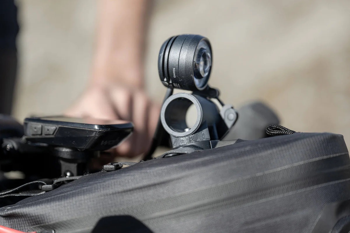 AERO MOUNT / 02 ist eine ultra-leichte und ultra-praktische Lösung zur Befestigung von Licht oder Fahrradcomputer an der HANDLE BAR AERO BAG. Einfach, schnell und stabil lässt es sich an den vorhandenen Aufnahmen auf der Oberseite der HANDLE BAR AERO BAG befestigen. Dort dient es als „Lenkerersatz“ und ermöglicht die Montage der meisten kompakten Frontlampen, Fahrradcomputer/GPS oder als Adapter für Smartphone-/GPS-Halterungen. So wird die Platz- und Verschattungs-Problematik bei der Nutzung der HANDLE BAR AERO BAG gelöst.