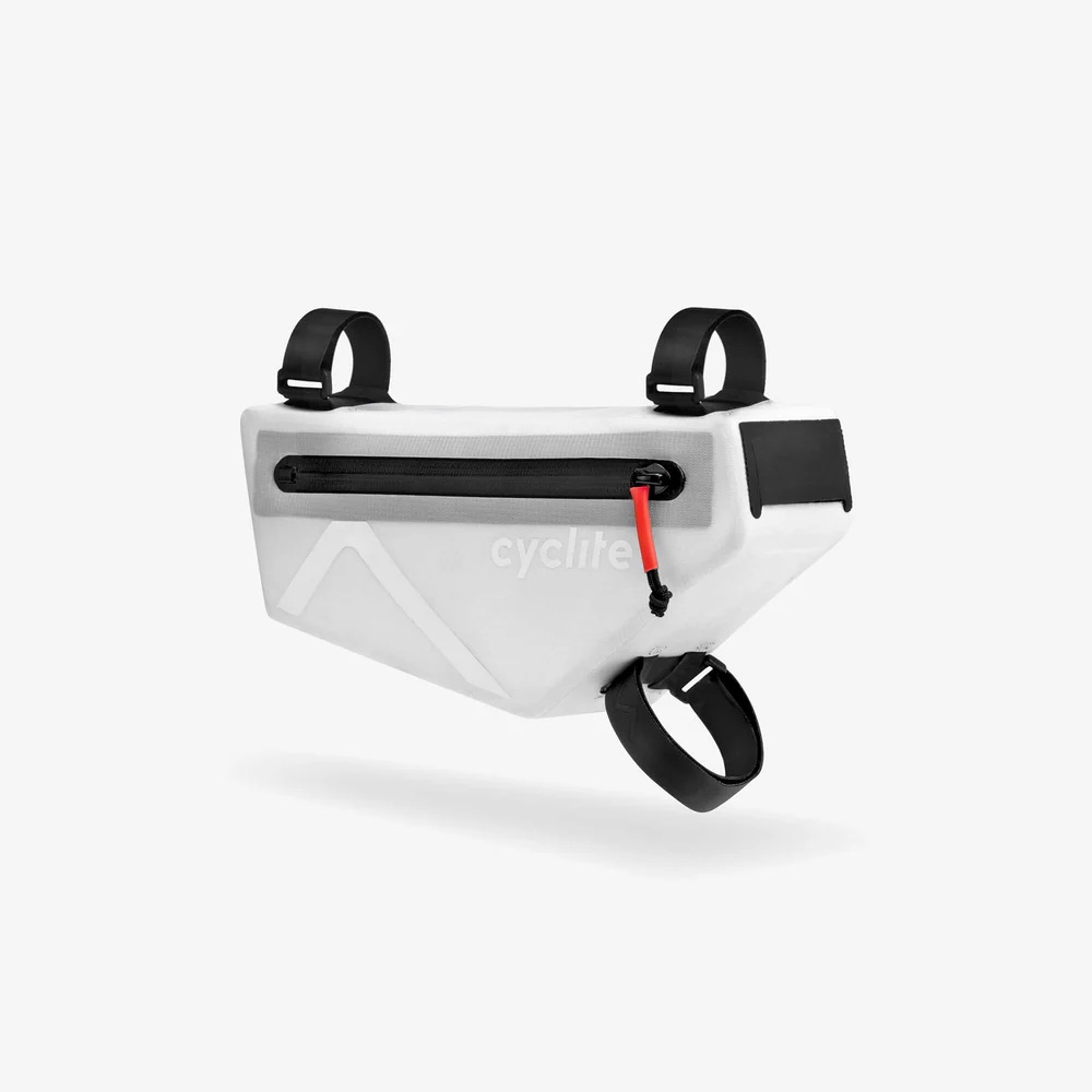 FRAME BAG SMALL / 02 ist unsere schmalste Rahmentasche mit 1,4 Litern Volumen, die sich für nahezu jeden Rahmen eignet: als Haupttasche bei kleinen Rahmen für längere Touren oder als kompakte Tasche bei größeren Bikes. Dank ihrer schlanken Bauform passt sie selbst bei XS-Rahmen ins vordere Rahmendreieck – genauso wie an vollgefederte Mountainbikes mit Dämpfern. Sie lässt sich zudem auch als kompakter Stauraum zwischen zwei großen Flaschen nutzen. Wie alle FRAME BAG-Modelle verfügt die Small-Variante über zwei separate Fächer: Das größere Reißverschlussfach auf der rechten Seite bietet Platz für Werkzeug, Riegel, eine leichte Regenjacke und eine Powerbank. Eine integrierte, elastische Innentasche sowie ein Schlüsselhaken sorgen dabei für Ordnung und sicheren Halt. Das schmale Fach auf der linken Seite eignet sich für Karten, Ausweise oder Bargeld. Die abgedeckte Öffnung an der Front ermöglicht das Durchführen eines Ladekabels für Handy, GPS und Licht.