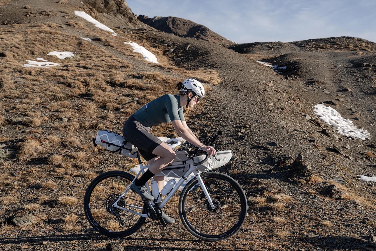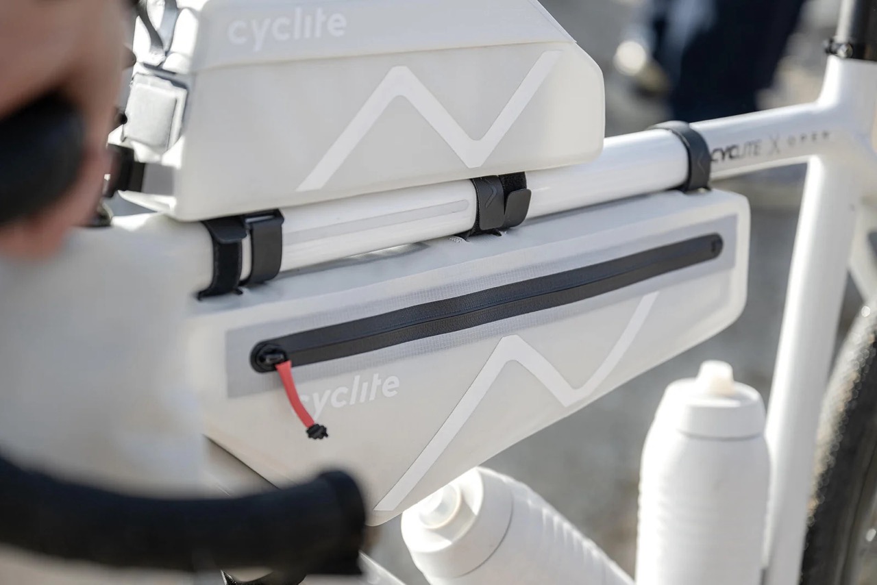 FRAME BAG / 02 ist unsere universelle Immer-dabei-Tasche, in die erstaunlich viel hineinpasst. Es gibt zwei wetterfeste Reißverschlüsse, die linksseitig Zugriff auf ein flaches Fach, z. B. für Dokumente oder Geld, sowie rechtsseitig auf das geräumige Hauptfach ermöglichen. Darin sind auch zwei Netz-Innentaschen für Kleinteile sowie ein Schlüsselhaken zu finden. Auf der Vorderseite ist eine abgedeckte Öffnung, durch die Kabel zur Stromversorgung von GPS, Licht oder Mobiltelefon oder ein Trinkschlauch geführt werden können. Grundsätzlich eignet sich die FRAME BAG / 02 dazu, eher schwerere Ausrüstungsgegenstände, an die man untertags gut gelangen kann (Werkzeug, Powerbank, Schloss, Trinkblase), unterzubringen.
