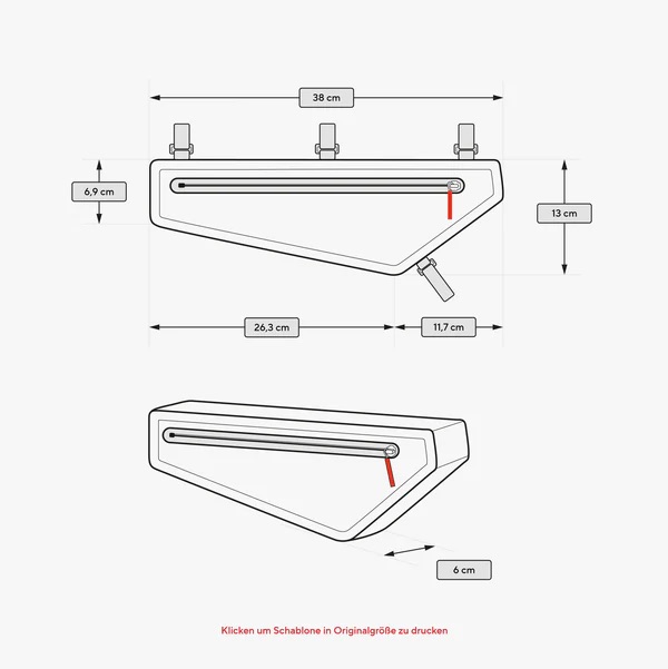 Die FRAME BAG / 02 benötigt einen gewissen Platz unterhalb des Oberrohrs, der bei einigen Mountainbikes aufgrund der Dämpferanordnung nicht vorhanden ist. Durch die Form der Tasche können Trinkflaschen im Flaschenhalter in der Regel verwendet werden.