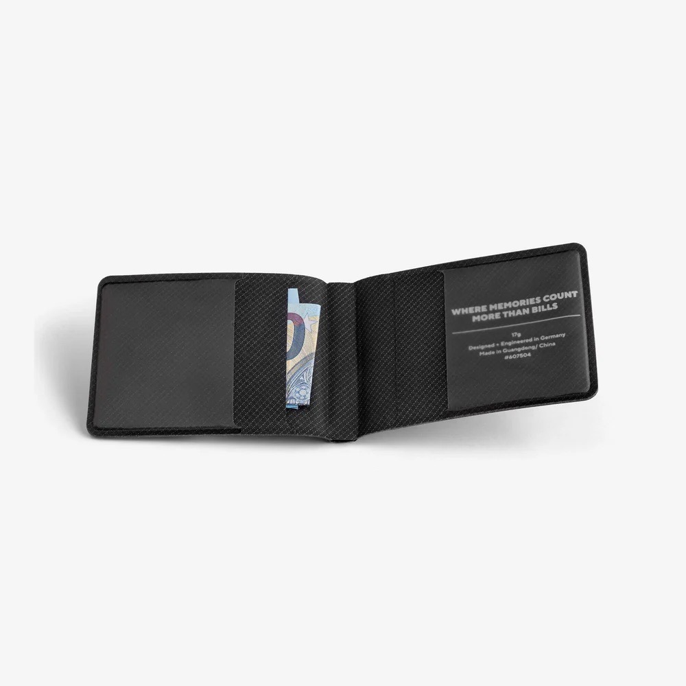 WALLET / 02 ist ein ultraleichter und äußerst kompakter Geldbeutel, der perfekt für Karten und Geldscheine geeignet ist. Mit seiner RFID-Blocker-Technologie bietet er zusätzliche Sicherheit für sensible Daten. So bleiben die Zahlungsmittel unterwegs stets organisiert, nahezu ohne zusätzliches Gewicht oder Volumen.