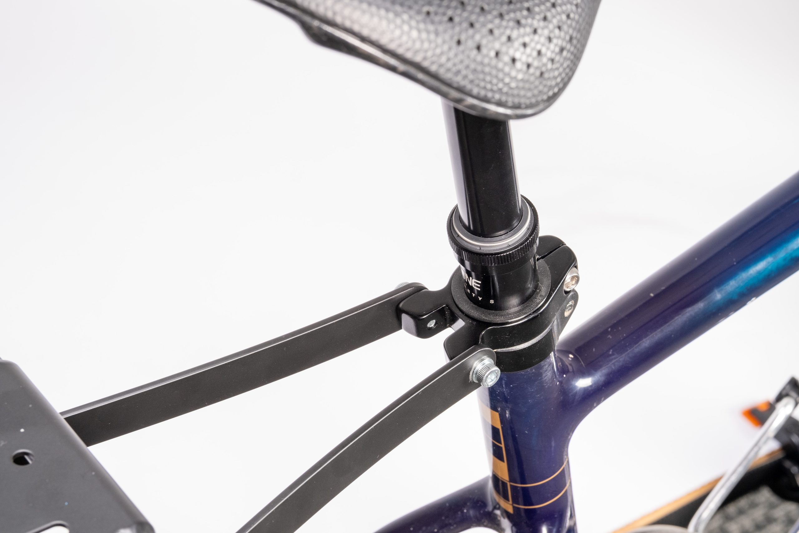 Die Sattelstützenhalterung ist eine Klemme, die an der Sattelstütze befestigt wird und zwei Ösen zur Anbringung der Gepäckträgerverlängerungen am Fahrrad bietet. Die Halterung ist für runde Sattelstützen mit einem Durchmesser von 27,2 mm bis 34,9 mm geeignet.