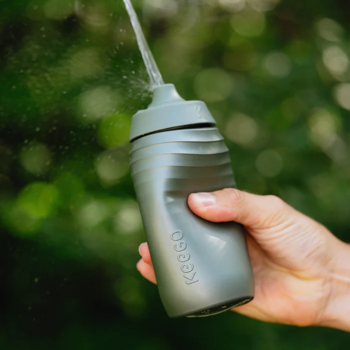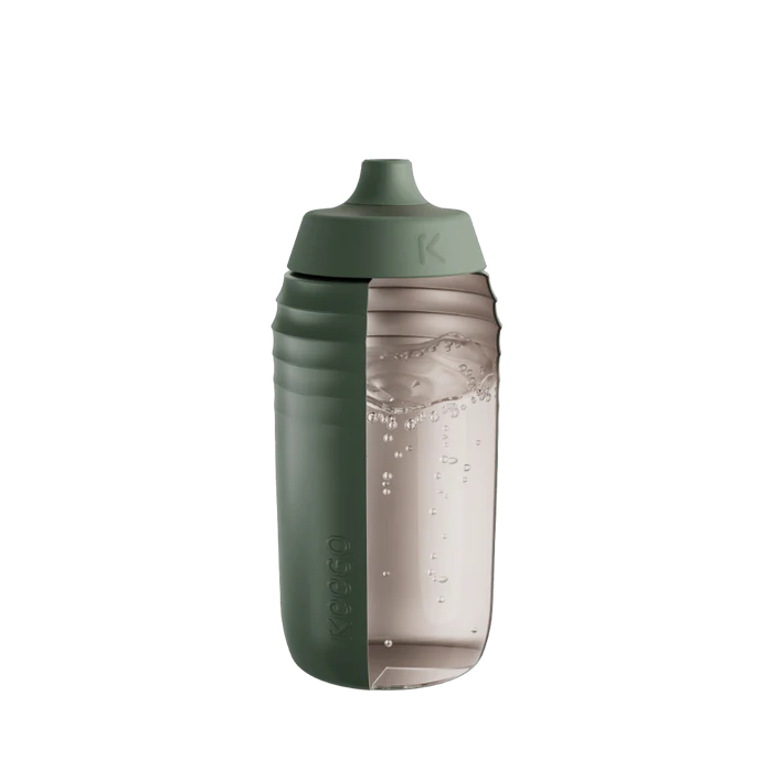 Die KEEGO 500 ist die konsequente Weiterentwicklung zur saubersten und nachhaltigsten Sportflasche aller Zeiten. Die robuste Außenhülle bietet zusätzlichen Halt und ermöglicht leichtes Zusammendrücken. Der Verschluss lässt sich einfach zerlegen, reinigen und wieder zusammensetzen. Dabei verhindert der reine Silikon Noppen jeglichen Kunststoffkontakt. Das Ventil öffnet sich beim Zusammendrücken der Flasche und ermöglicht so das einhändige und sportliche Trinken.