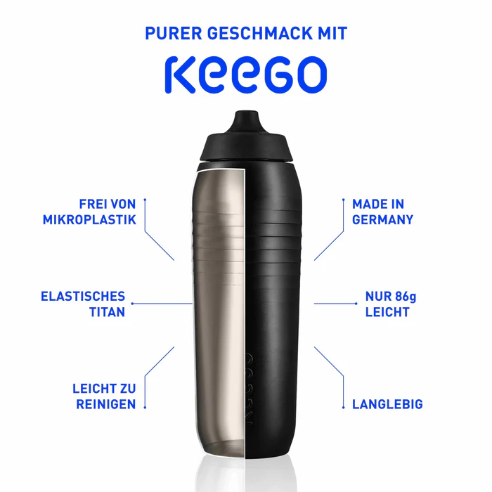 Die KEEGO überzeugt vor allem durch ihre Langlebigkeit, Quetschbarkeit und ihr geringes Gewicht von nur 86g. Sie ist die konsequente Weiterentwicklung zur saubersten und nachhaltigsten Sportflasche aller Zeiten. Die Außenhülle mit recyceltem Kunststoff bietet zusätzlichen Halt und ermöglicht leichtes Zusammendrücken.